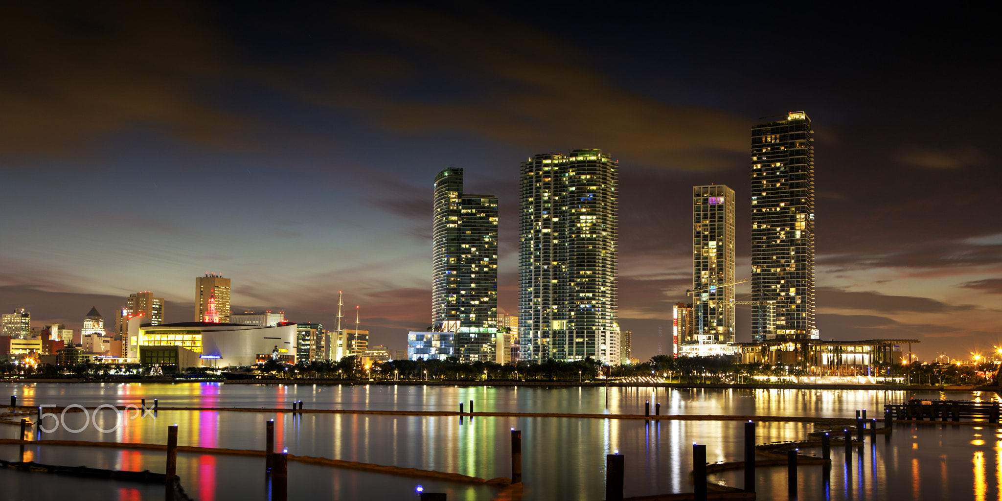 Miami Florida skyline at dusk via 500px https://ift.tt/1Lek060