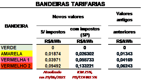É esperado que seja feita nova atualização destes valores & status das bandeiras até o final de mês agosto, validas para setembro.